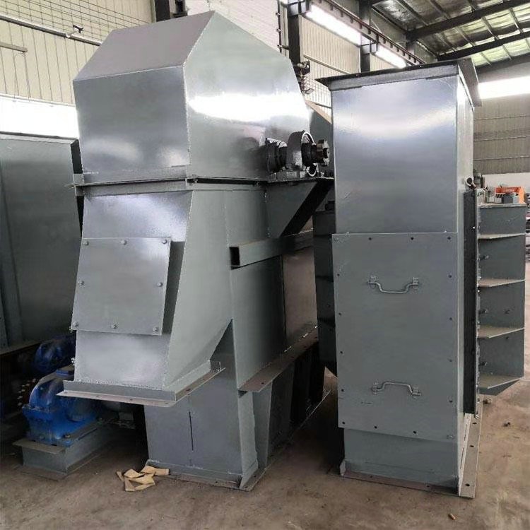 4、提升機的鏈條及料斗:鏈條為圓鋼焊接環(huán)鏈。料斗用螺母定在鏈條的接頭上。不同高度的斗提機現(xiàn)套相應數(shù)量的鏈條、接頭、及料斗。